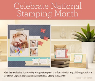 Well I can't believe it, but summer is over and September is officially here. A couple of good things about September are 1. The kiddos are back in school, and now we have more time to play with our favorite paper and stamps! And 2. September is National Stamping Month and Close to my Heart has a great campaign going on to celebrate!